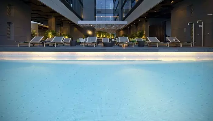 - استخر 25 متری و جکوزی: هتل دارای دو استخر یکی برای شنا (Lap Pool) و دیگری برای ریلکس کردن (Jet Pool) است که در فضایی زیبا قرار گرفتهاند.