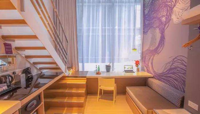 مفهوم اصلی در طراحی هتل استودیو ام سنگاپور (Studio M Hotel)، ایجاد فضاهای زندگی دوبلکس (لافت) است که حس اقامت در یک آپارتمان مدرن و شیک را به مهمانان میدهد. تمام 360 اتاق این هتل 9 طبقه به صورت دوبلکس طراحی شدهاند که در طبقه پایین فضای کار و نشیمن و در طبقه بالا فضای خواب قرار دارد. این طراحی نوآورانه، با وجود مساحت نسبتا کم 22 متر مربعی اتاقها، باعث ایجاد فضایی دلباز و کاربردی شده است.