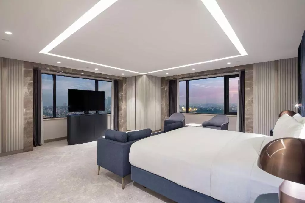 اتاق‌های بزرگ هتل هیلتون استانبول ماسلاک با دکوراسیون رترو یا معاصر تزئین شده‌اند و دارای تلویزیون صفحه تخت ۳۲ اینچی، مینی‌بار و چای و قهوه‌ساز هستند.