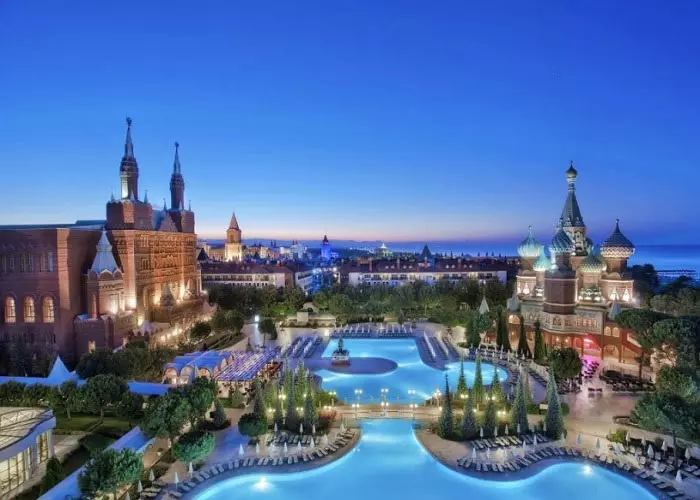 تصور کنید در دنیایی قدم میگذارید که در آن شکوه کاخهای تزاری روسیه با نسیم گرم مدیترانه درهمآمیخته است. هتل آستریا کرملین پالاس (Asteria Kremlin Palace)، جواهری در قلب آنتالیا، شما را به سفری لوکس و رویایی دعوت میکند. این اقامتگاه در فضایی ۷۵ هزار متر مربعی، دنیایی از امکانات بینظیر را پیش رویتان قرار میدهد: از پارک آبی هیجانانگیز با سرسرههایی برای بزرگسالان و کودکان گرفته تا شش رستوران متنوع که هر ذائقهای را راضی میکند. هفت بار با نوشیدنیهای رنگارنگ، حمام ترکی سنتی و سونای آرامشبخش، بخشی از تجربهای هستند که در هتلهای آنتالیا بیمانند است. این هتل در فاصله ۲۱ کیلومتری مرکز شهر آنتالیا و تنها ۱۲ کیلومتر از فرودگاه، آماده است تا تعطیلاتی فراموشنشدنی برایتان رقم بزند.